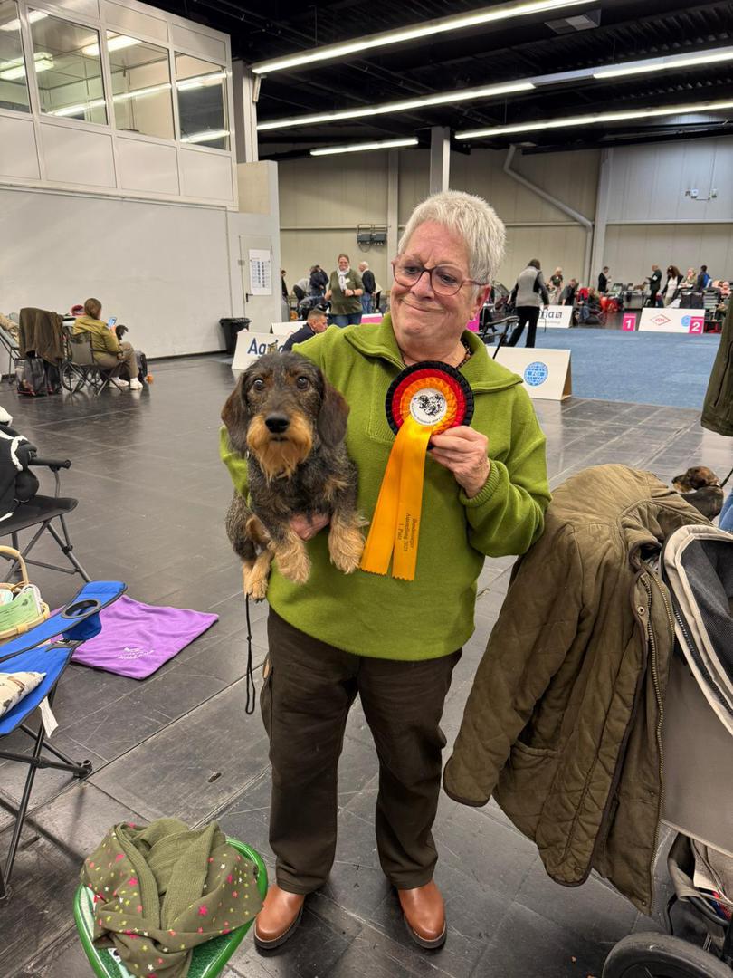 Mit Joker waren wir am 5.10.24 in Celje Slowenien bei der WUT World Winner Show. Es waren 370 Teckel. Bei Andreas Tornau erlief sich Joker den Sieg in der Gebrauchshundeklasse