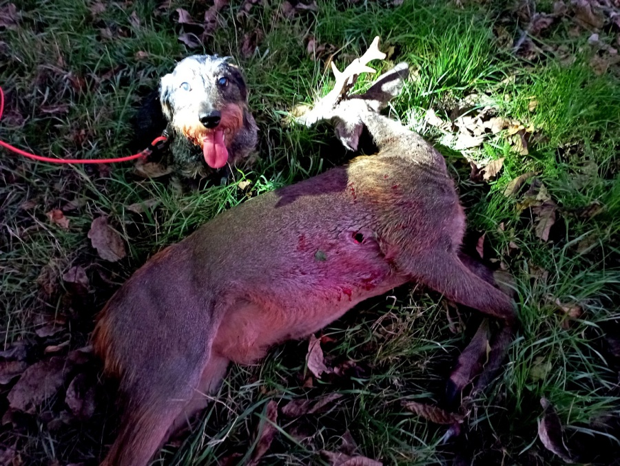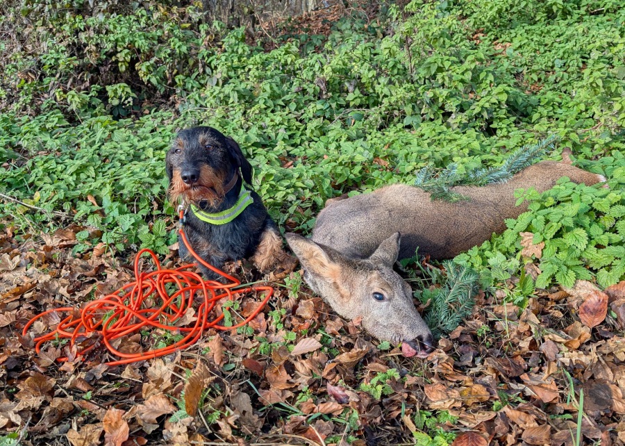 Adele hat im neuen Jagdjahr ihren 1. Bock nachgesucht. Todsuche ca 50 m.