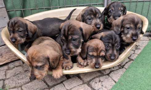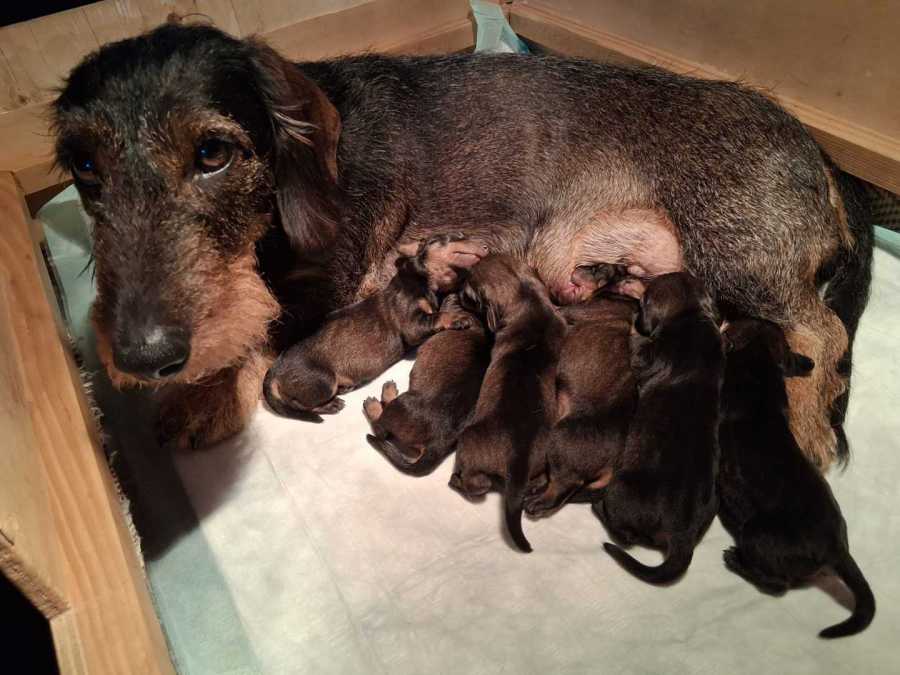 Im Zwinger "vom Waldwuffel" warf die Hündin "Hornisse vom Waldwuffel" nach unserem Joker am 2.3.26 5 Rüden und 3 Hündinnen. Es sind noch Welpen frei. Züchterin ist Uta Börner aus 35753 Greifenstein in Nordhessen.