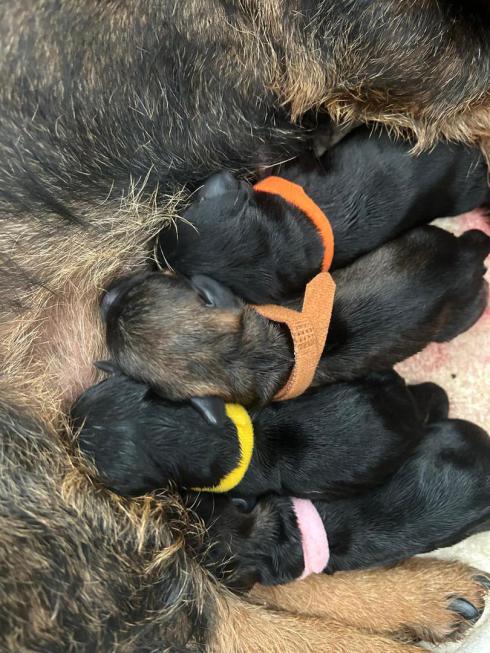 Im Zwinger "vom Nüstenbacher Grund" warf die Hündin "Selina vom Nüstenbacher Grund" am 17.4.26 2 Rüden und 4 Hündinnen nach unserem Joker. Es sind noch Welpen frei. Züchter ist Susanne Holzmann 74858 Aglasterhausen in Nordbaden. Tel. 06262/9262751