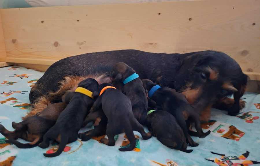 Im Zwinger vom Lindlbrunnen wurden am 25.1.2026 5 Rüden und 3 Hündinnen saufarben und schwarz-rot geworfen.